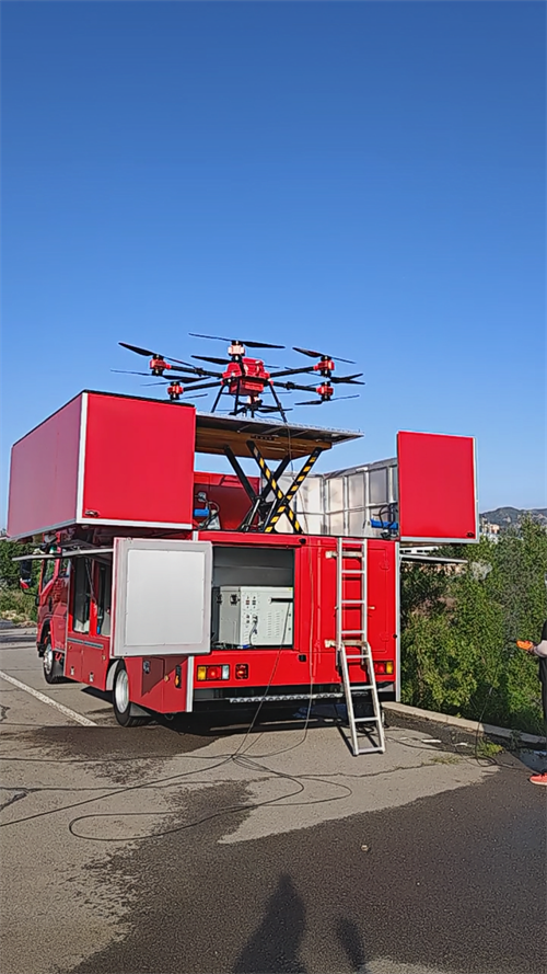 卓翼系留无人机高层灭火解决方案通过车机协同,可在五分钟内完成展开部署工作。消防保障车作为地面指挥支援中枢,可在内部实时监视火场、无人机、周边情况。支持加装地面高压水炮,与无人机同步作战。车辆搭配多种扩展接口,可满足医疗、通信、照明等多种需求。