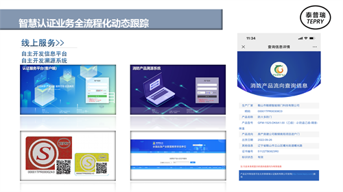 泰普瑞认证拥有自主开发的认证信息服务平台和消防产品身份标识溯源系统,实现了质量认证信息全流程化的动态跟踪,得到认证采信方的高度认可。